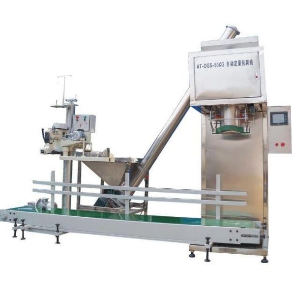 Manual bag placing-->Auto filling-->Auto weighting-->Auto bag conveyor-->Auto bag sewing or heat sealing